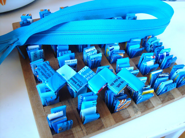 $ 0 0 Tidligere farvesorterede fletteprojekter har budt på grøn, grønnere og grønnest. Så fik jeg samlet ordnet og anvendt en masse grøn emballage. Nu er dillen imidlertid blå - op på hesten og derudaf igen, nu bare med blå emballage...
